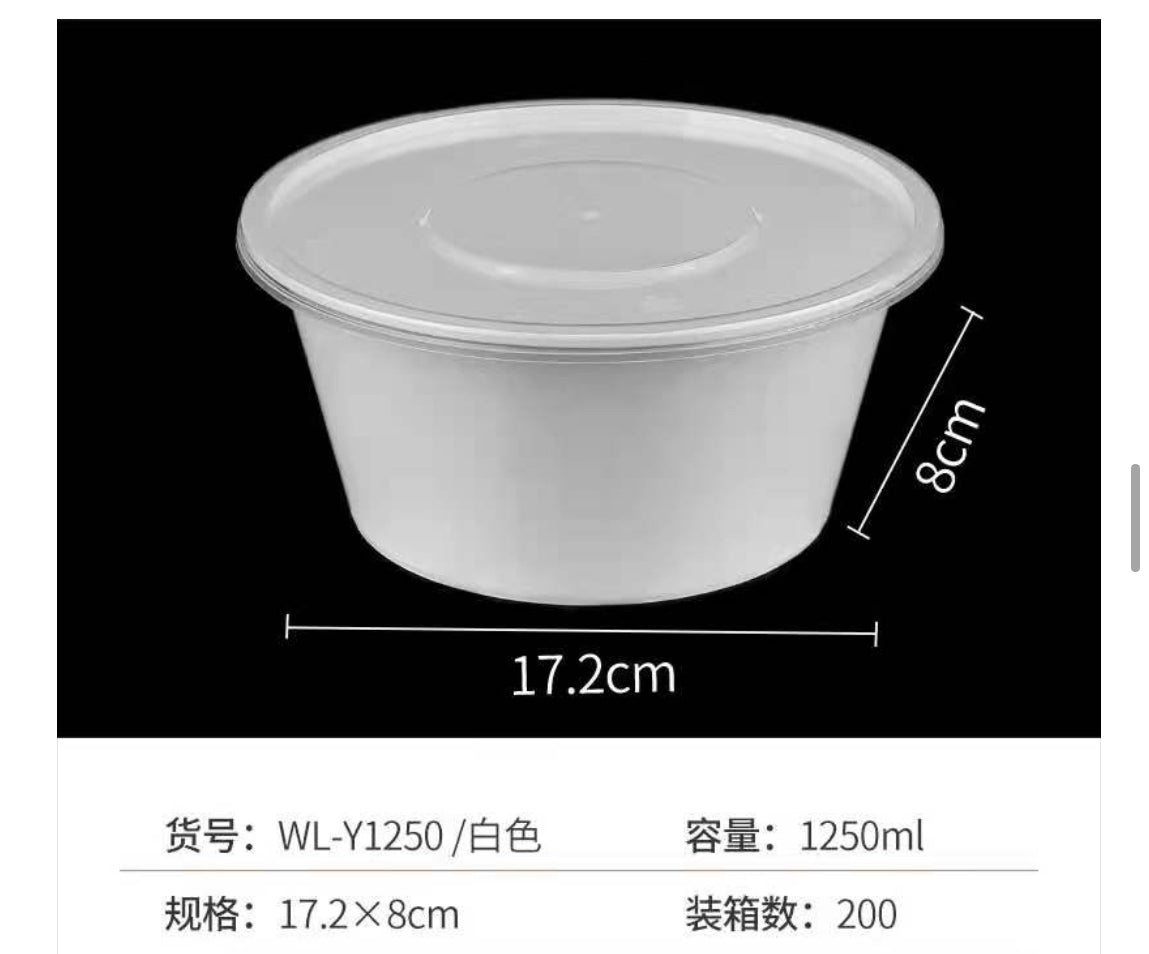 1250ml 白色圓餐盒連蓋 200套/箱